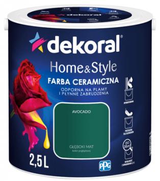 Avocado to jeden z 56 kolorów dostępnych w palecie ceramicznej farby Home&Style marki Dekoral. Home&Style oferuje szerokie spektrum aksamitnych kolorów, wśród których znaleźć można zarówno delikatne pastele, jak i średnio nasycone kolory naturalne, oraz ciemne i głębokie barwy, do których należy Avocado.