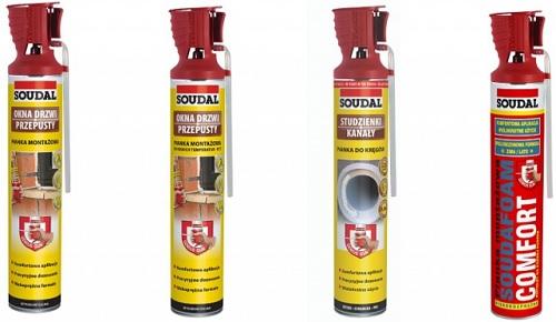 Oferta pian montażowych Soudal z aplikatorem Genius Gus obejmuje cztery produkty: pianę w formule letniej, pianę do pracy w niskich temperaturach, pianę Comfort (formuła wielosezonowa) oraz pianę opracowaną specjalnie z myślą o uszczelnianiu połączeń kręgów kanalizacyjnych, elementów konstrukcji szybów, studzienek, komór i kanałów telekomunikacyjnych.